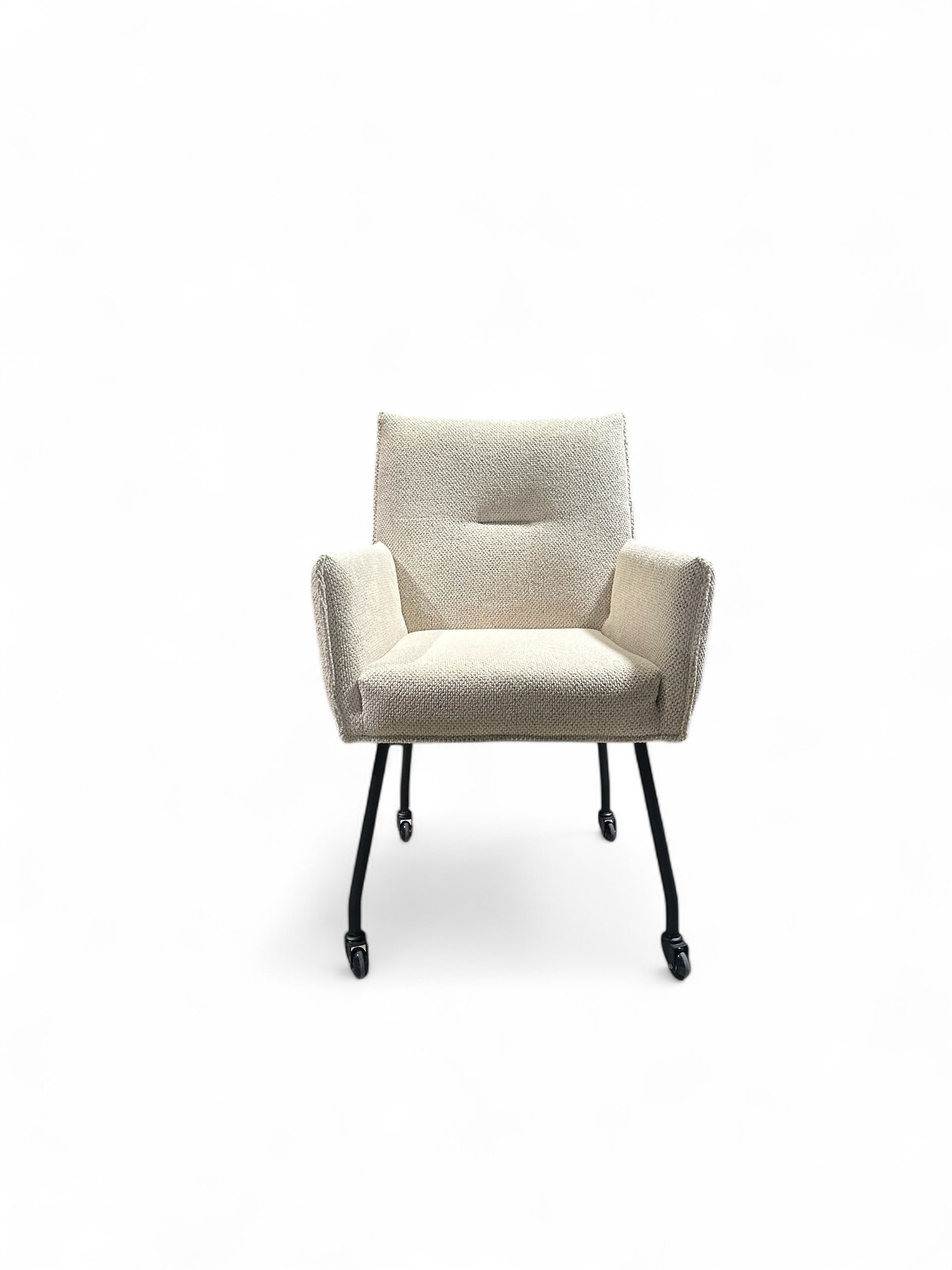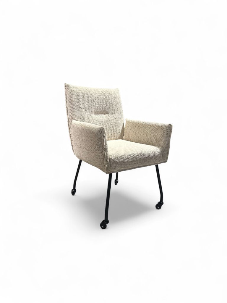 Specificaties: * Eetstoel Lush is ook leverbaar met of zonder armen. * Stoel Lush heeft gepoedercoate metalen poten of spiderpoot (draaibaar). * Met of zonder skatewielen leverbaar. * Beschikbaar in diverse stoffen en kleuren. * De armhoogte is 67 cm.
